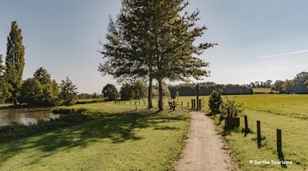 Plusieurs sentiers de randonnées balisés vous accueilleront pour une marche à votre rythme. Parmi les jolis panoramas qui s’offrent à vous, déambulez entre espaces forestiers, étangs, campagnes et patrimoine. Parmi ces circuits, prenez la journée et empruntez le sentier de la double boucle longeant la Vègre (20 minutes de route depuis le camping – départ à Loué) et admirez une riche biodiversité et un patrimoine ancien. Une belle sortie à réaliser en famille !